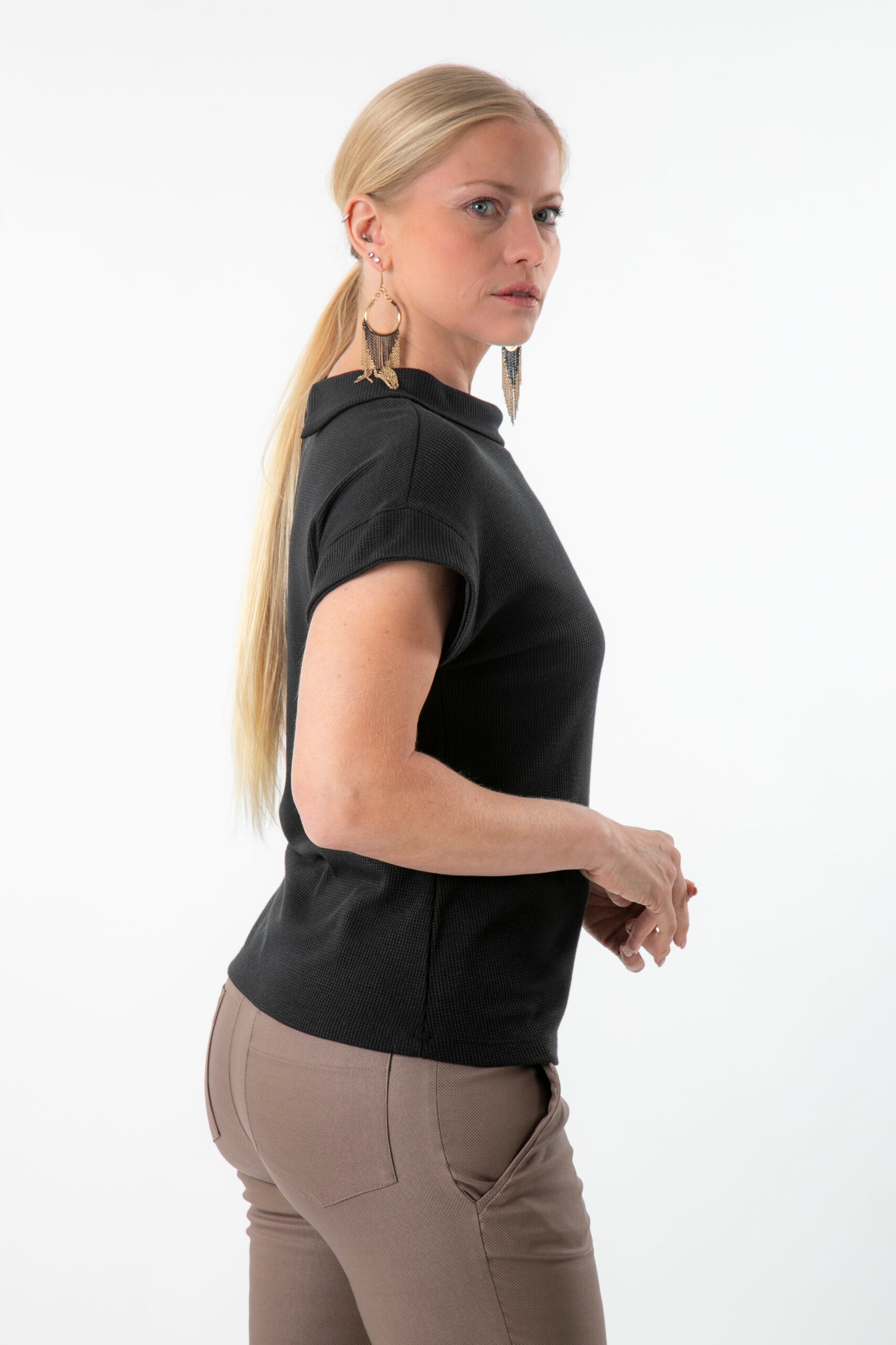 חולצה אפורה עם צווארון א-סימטרי -דגם דבורנית