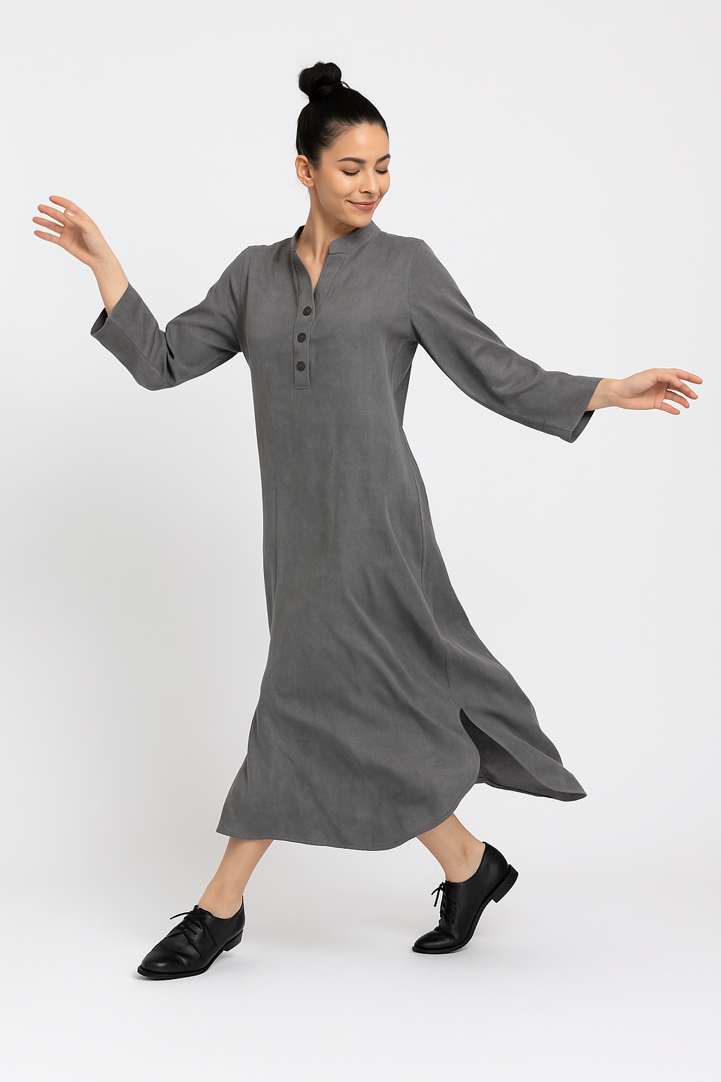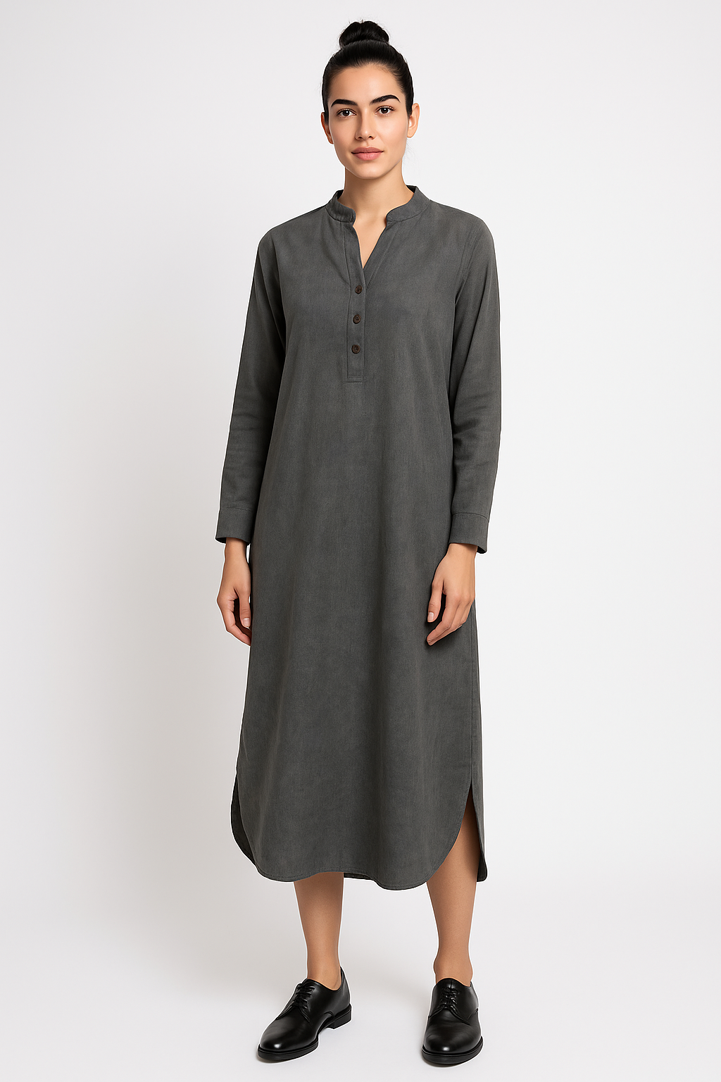 גלביה ארוכה בגיזרה משוחררת מהגוף הגלביה עשויה מבד כותנה נקיה בצבעית ווש לא אחיד צווארון סיני מחמיא לצוואר שרוולים ארוכים הרכב הבד:100% כותנה